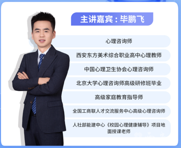 本期嘉宾:毕鹏飞(心理咨询师、高级家庭教育指导师、心理教师)