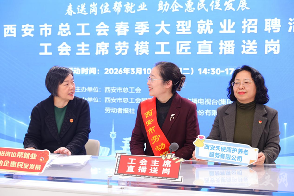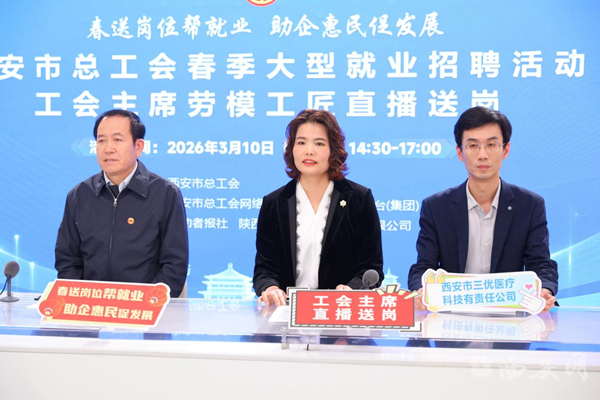 3月10日下午,西安市工会主席劳模工匠直播送岗第二场活动如期开播。市总工会领导、劳模工匠与8家优质企业代表携手搭建“云端招聘桥”,集中送出超300个热门岗位,助力求职者精准对接心仪工作。