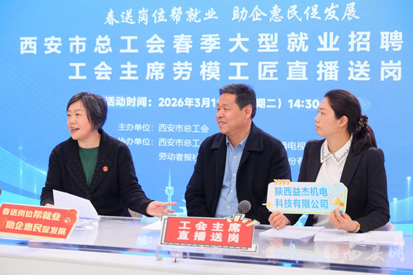 本场直播延续“主席带岗、劳模荐岗、企业亮岗”的特色亮点。市总工会经审会主任、女工委主任宋军,副主席薛关文先后坐镇直播间,与企业代表共同解读岗位信息;西安市劳动模范司冬梅、西安市职业技能带头人董春定等结合自身从业经历,分享岗位价值与成长感悟,用榜样力量传递工匠精神,为求职者提供实用就业参考。